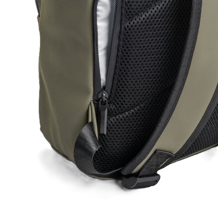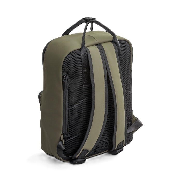 Robust rygsæk i vandafvisende materiale med mat finish fra Escape Nordic. Polstrede, 5,5 cm brede justerbare skulderstropper.