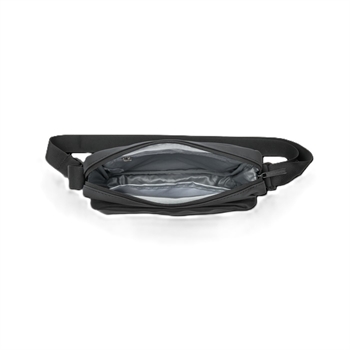 Indvendigt: et lynlåsrum og en åben lomme, perfekt til din mobiltelefon. Foran: større lynlåslomme. Bagpå: lynlåslomme.