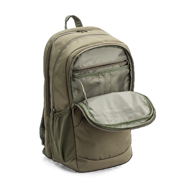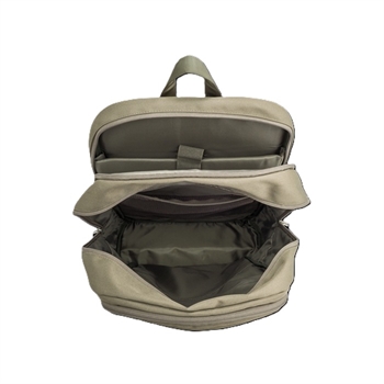 Indvendigt: Polstret rum til bærbar computer op til 16" samt flere åbne og lynlåslommer. Foran: Skjult lynlåslomme.