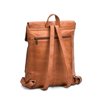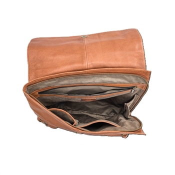 En stilfuld og rummelig rygsæk fra Houseof Sajaco i lækkert blødt læder, perfekt til skole og arbejde. Rygsækken har en klap med trykknap, en lynlåslomme på bagsiden og en på forsiden. Indvendigt er der et polstret rum til en 11" pc. To åbne lommer til en mobiltelefon eller andre småting.