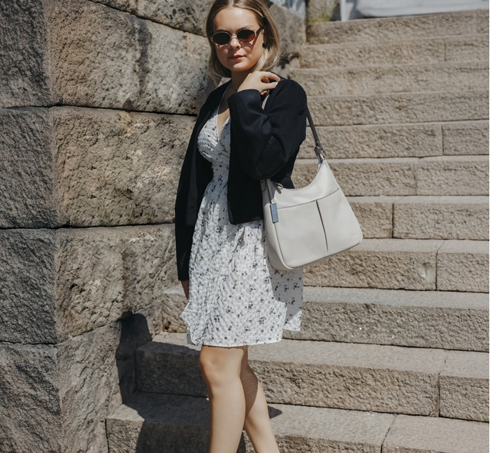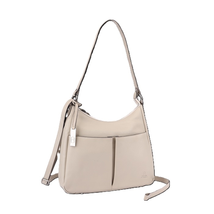 House of Nordic Classic-serien kommer med denne lækre hobo i smukt nappalæder. Den er lille på skulderen, men rummer stadig meget. Leveres med dobbelte stropper, som du nemt kan skifte ved at åbne/lukke metalringen. Store lommer foran giver den et karakteristisk look, der også har en funktion. Lige som vi kan lide det. Passer lige så godt til en sommerkjole som til strikkede beklædningsgenstande og en yderjakke.