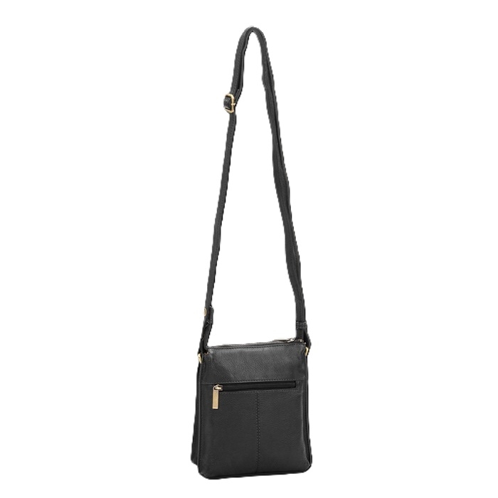 Lynlås foroven. Trinløst justerbar skulderrem. Messingfarvede metaldetaljer. Lynlåslomme bagpå.