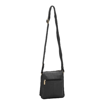 En flot og praktisk crossover-taske i læder fra The Monte, lavet af blødt og smidigt kalveskind. Perfekt størrelse, når du bare vil have din mobiltelefon, nøgler og småting med.