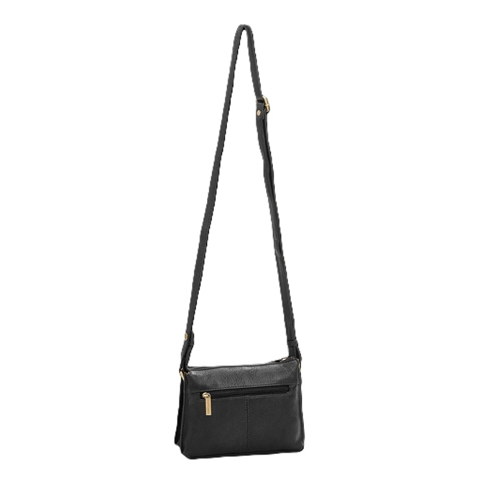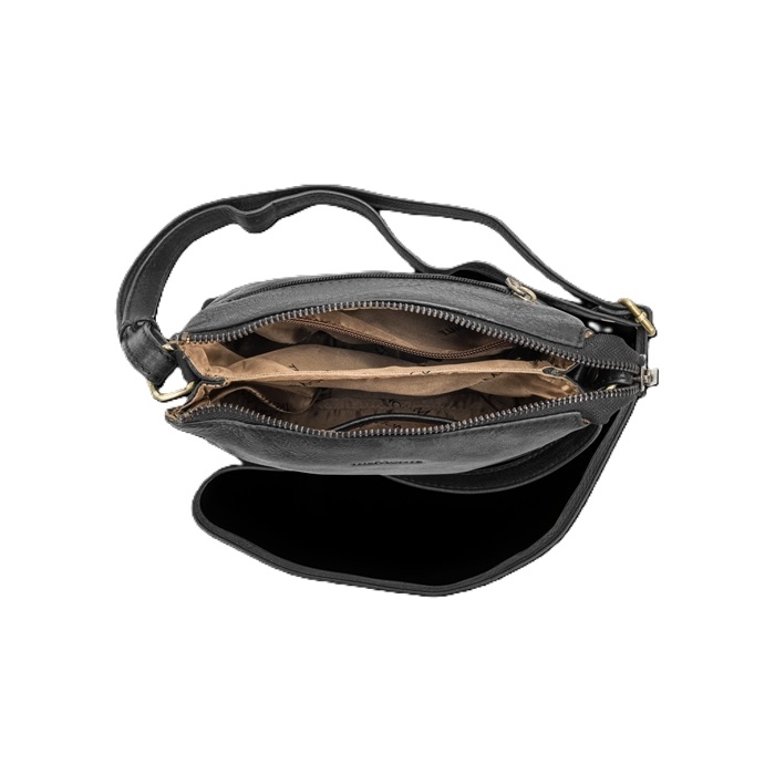 Lynlåslukning. Indvendigt: en åben lomme + en lynlåslomme. Trinløst justerbar skulderrem. Messingfarvede metaldetaljer. Lynlåslomme på bagsiden.