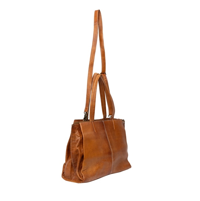 Eliana er rigtig god arbejdstaske fra Re:Design i en lækker blød vintage-look læder. Der er et hovedrum, der kan lukkes med en lynlås. Indvendig er der en polstret lomme til en bærbar computer. På hver side af hovedrummet er der 2 separate rum, der lukkes med magnetknapper. Tasken har også en lomme for nem adgang, samt 2 skulderhåndtag og en regulerbar og aftagelig krydsrem.