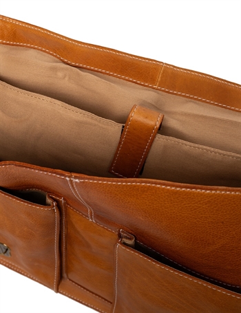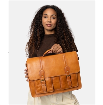 Melia Big er en virkelig flot, tidløs og retro inspireret arbedjstaske fra Re:Design i en lækker vintage-look læder. Mange flotte detaljer. Den åbnes med en slående spændelukning. Tasken har et stort hovedrum samt 2 forlommer, samt et dedikeret rum til en bærbar computer. Tasken har også en aftagelig og regulerbar skulderrem.